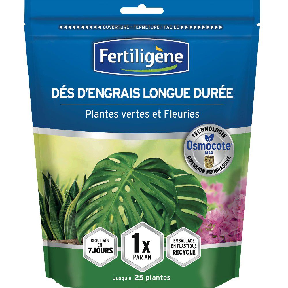 Dés d'engrais osmocote FERTILIGENE pour plantes vertes et plantes fleuries